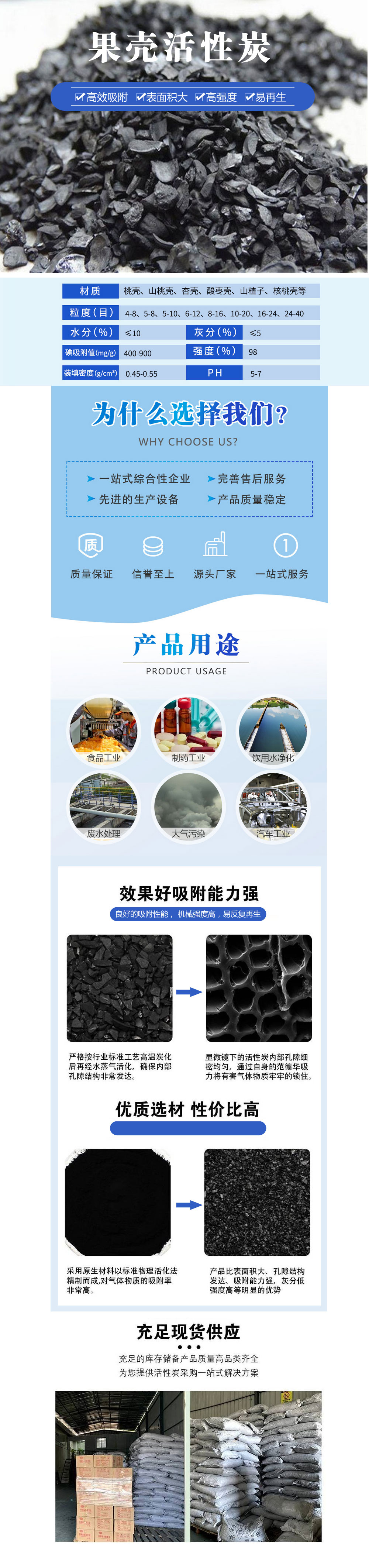 龍華的果殼活性炭選用優(yōu)質(zhì)杏殼、桃殼、核桃殼、棗殼等果殼為原料,經(jīng)系列生產(chǎn)工藝精制而成,外觀呈黑色顆粒狀。果殼活性炭優(yōu)點(diǎn)是孔隙結(jié)構(gòu)發(fā)達(dá),比表面積大,吸附性能強(qiáng),庫層陰力小,化學(xué)性能穩(wěn)定,易再生。適用于高純度的生活飲用水、工業(yè)用水和廢水處理的深度凈化脫氯、脫色、除臭和黃金提煉等方面。